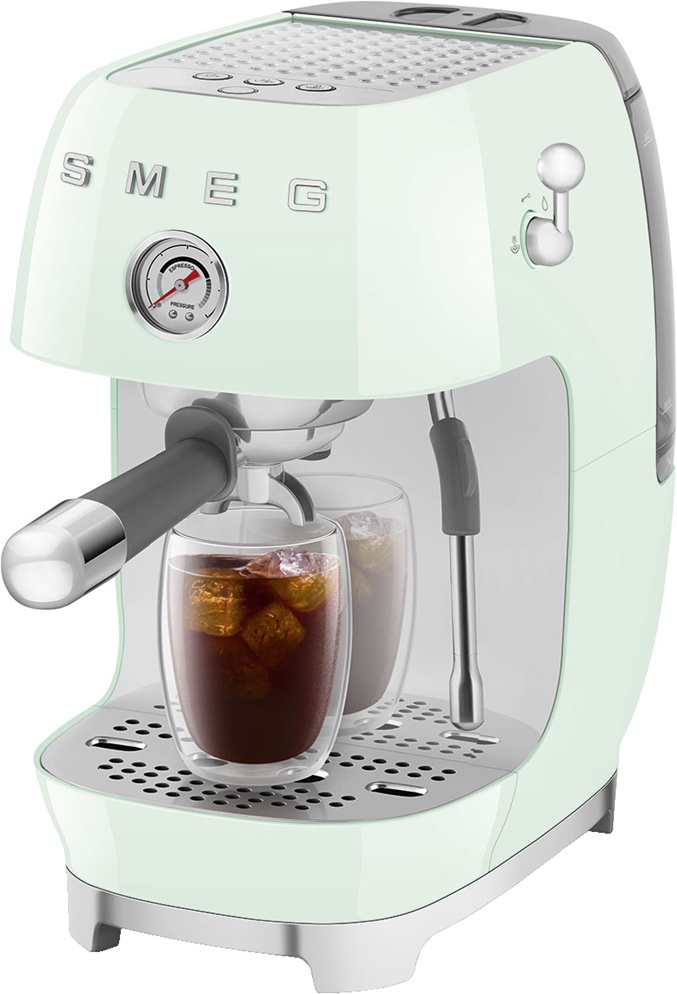 Эспрессо-кофемашина SMEG ECFO3PGEU, выполненная в стиле 50-х годов, подчеркнёт индивидуальность интерьера и станет настоящим украшением Вашей кухни в квартире или загородном доме. Предназначена для приготовления эспрессо, капучино и других кофейных напитков. Корпус и лоток для капель изготовлены из литого алюминия, холдер, рамка, капучинатор и поддон для чашек – из нержавеющей стали, основание – пластик.