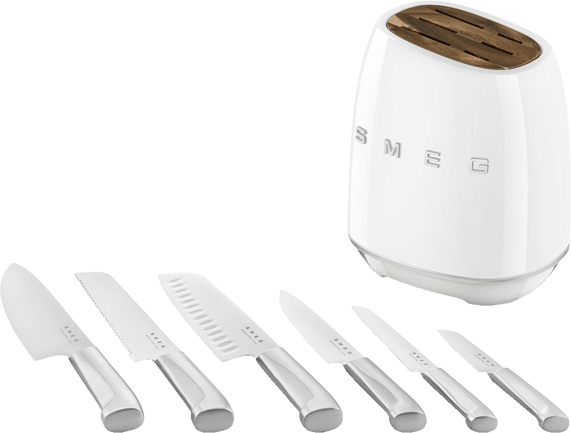 Комплект ножей SMEG KBSF02WH выполнен в стиле 50-х годов прошлого столетия. Этот набор сочетает в себе элегантный дизайн и высокую функциональность, что делает его незаменимым помощником для приготовления разнообразных блюд.