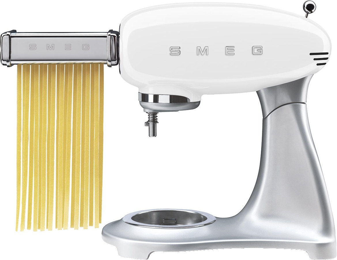Планетарный миксер SMEG SMF04WHEU, выполненный в стиле 50-х годов, подчеркнёт индивидуальность интерьера и станет настоящим украшением Вашей кухни в квартире или загородном доме. Предназначен для приготовления кремов, муссов, соусов, пюре и жидкого теста. Применение специальных насадок позволяет существенно расширить ассортимент приготавливаемых блюд. С их помощью данную модель можно использовать в качестве тёрки или мясорубки, а также для приготовления различных блюд итальянской кухни.