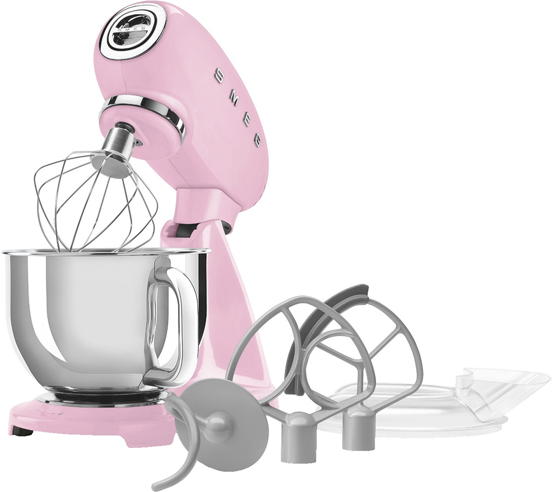 Планетарный миксер SMEG SMF05PKEU, выполненный в стиле 50-х годов, подчеркнёт индивидуальность интерьера и станет настоящим украшением Вашей кухни в квартире или загородном доме. Предназначен для приготовления кремов, муссов, соусов, пюре и жидкого теста. Применение специальных насадок позволяет существенно расширить ассортимент приготавливаемых блюд. С их помощью данную модель можно использовать в качестве тёрки или мясорубки, а также для приготовления различных блюд итальянской кухни.