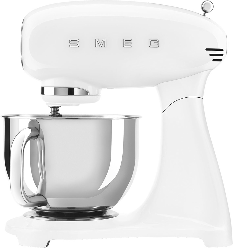 Планетарный миксер SMEG SMF05WHEU, выполненный в стиле 50-х годов, подчеркнёт индивидуальность интерьера и станет настоящим украшением Вашей кухни в квартире или загородном доме. Предназначен для приготовления кремов, муссов, соусов, пюре и жидкого теста. Применение специальных насадок позволяет существенно расширить ассортимент приготавливаемых блюд. С их помощью данную модель можно использовать в качестве тёрки или мясорубки, а также для приготовления различных блюд итальянской кухни.