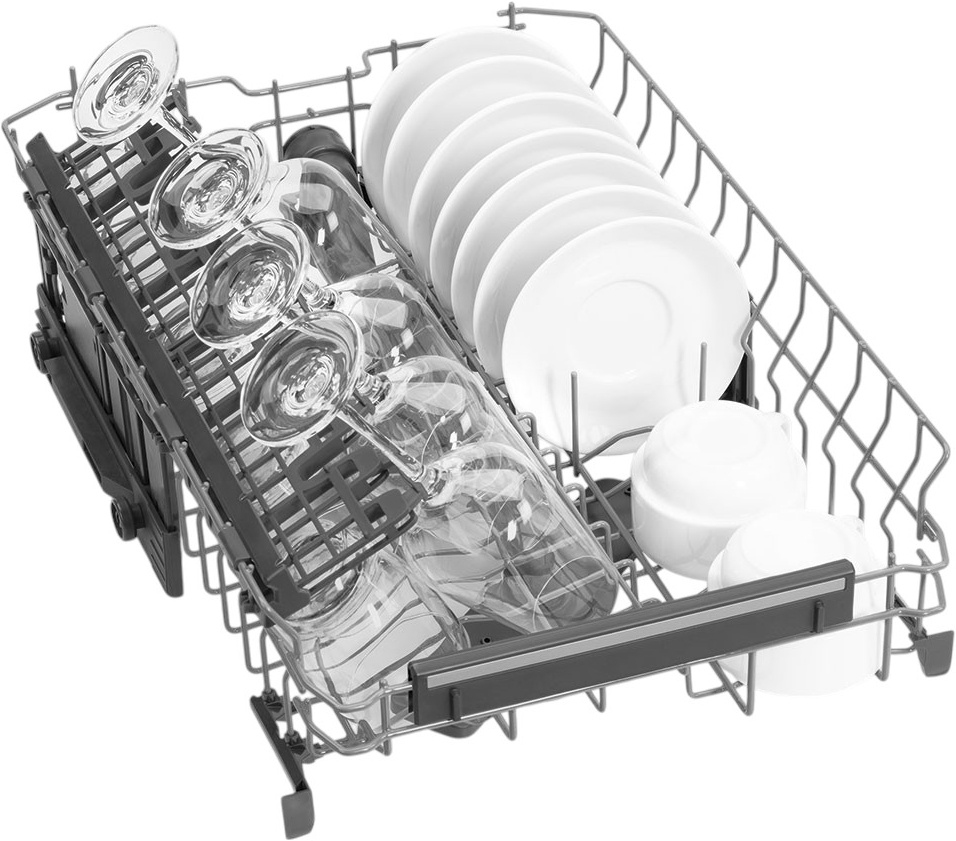 - Регулируемая по высоте верхняя корзина на 2 уровня (4 см) с фиксированными держателями