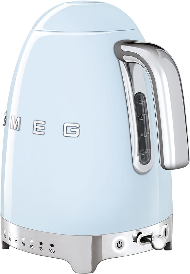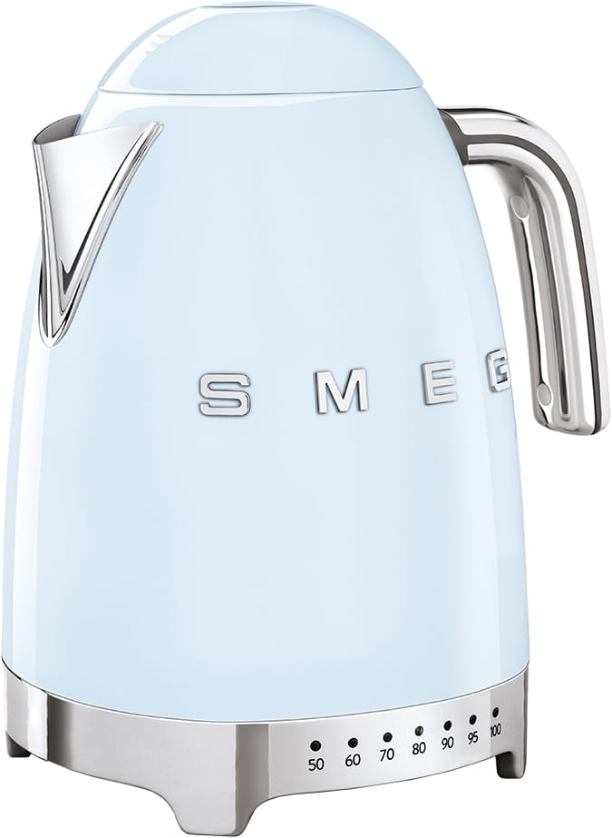Электрический чайник SMEG KLF04PBEU, выполненный в стиле 50-х годов, подчеркнёт индивидуальность интерьера и станет настоящим украшением Вашей кухни в квартире или загородном доме. Обеспечивает быстрый нагрев, максимальный комфорт и безопасность использования. Корпус изготовлен из нержавеющей стали.