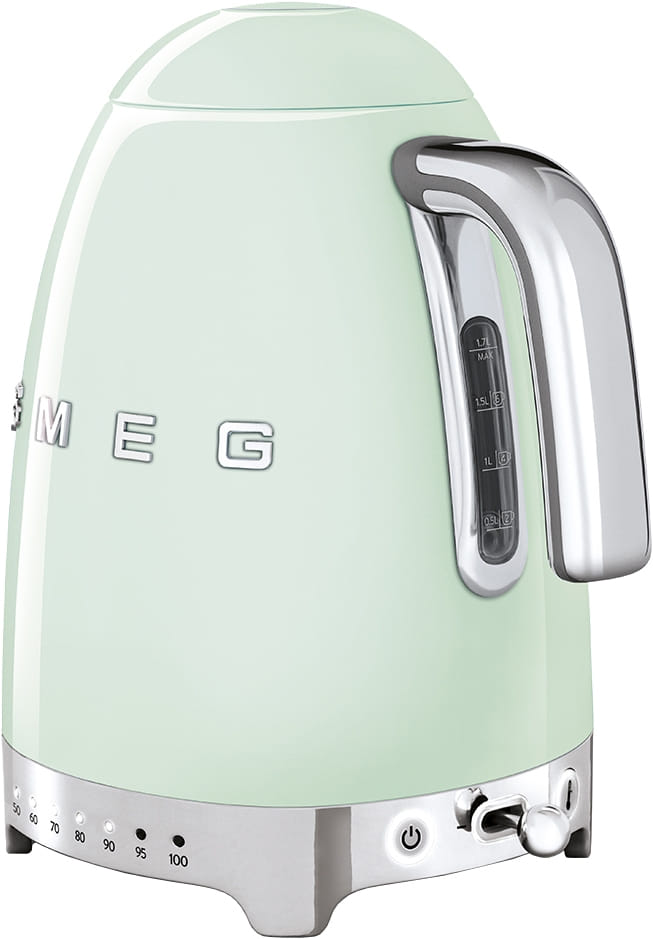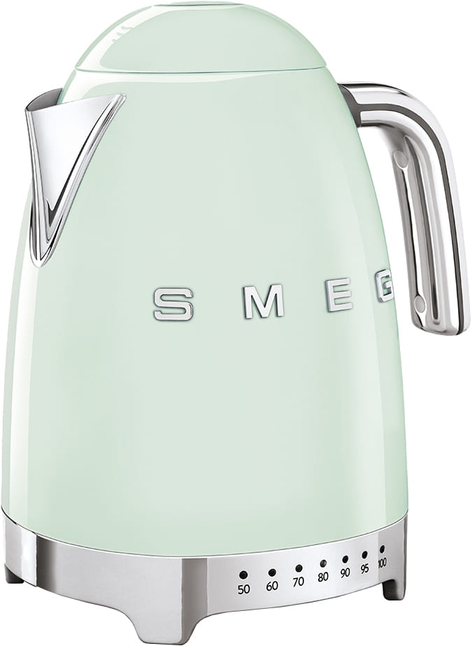Электрический чайник SMEG KLF04PGEU, выполненный в стиле 50-х годов, подчеркнёт индивидуальность интерьера и станет настоящим украшением Вашей кухни в квартире или загородном доме. Обеспечивает быстрый нагрев, максимальный комфорт и безопасность использования. Корпус изготовлен из нержавеющей стали.