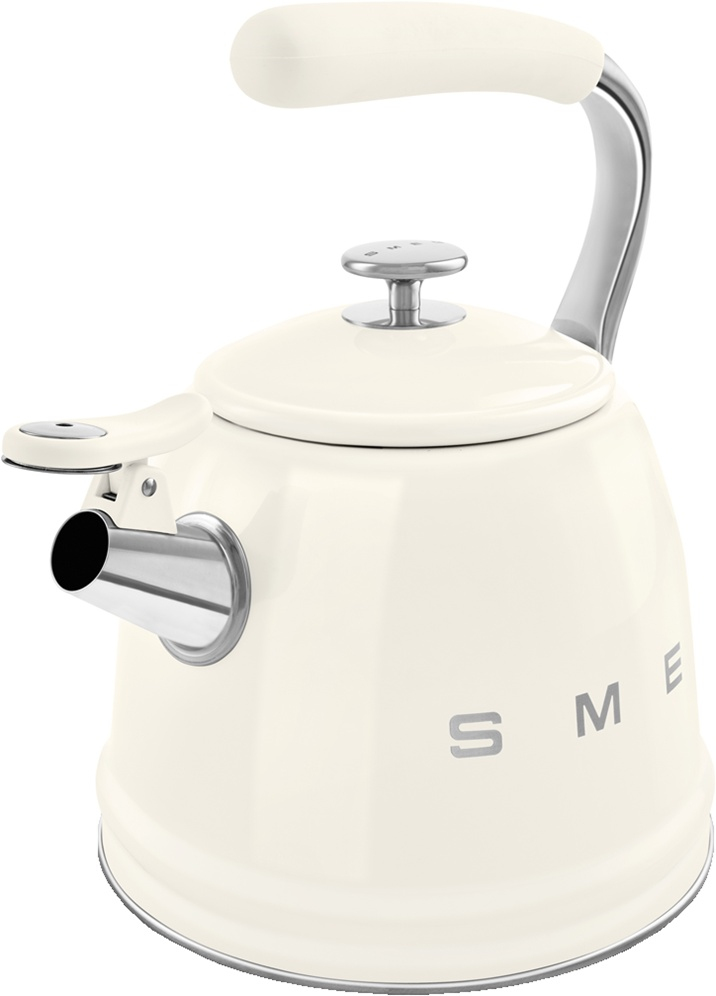 Чайник со свистком SMEG WKF01CR, выполненный в стиле 50-х годов, подчеркнёт индивидуальность интерьера и станет настоящим украшением Вашей кухни в квартире или загородном доме. Обеспечивает быстрый нагрев, максимальный комфорт и безопасность использования. Корпус выполнен из нержавеющей стали.