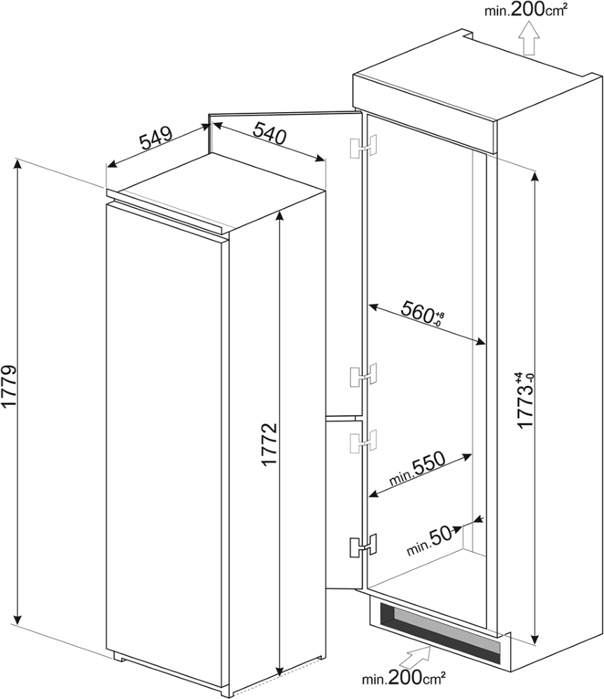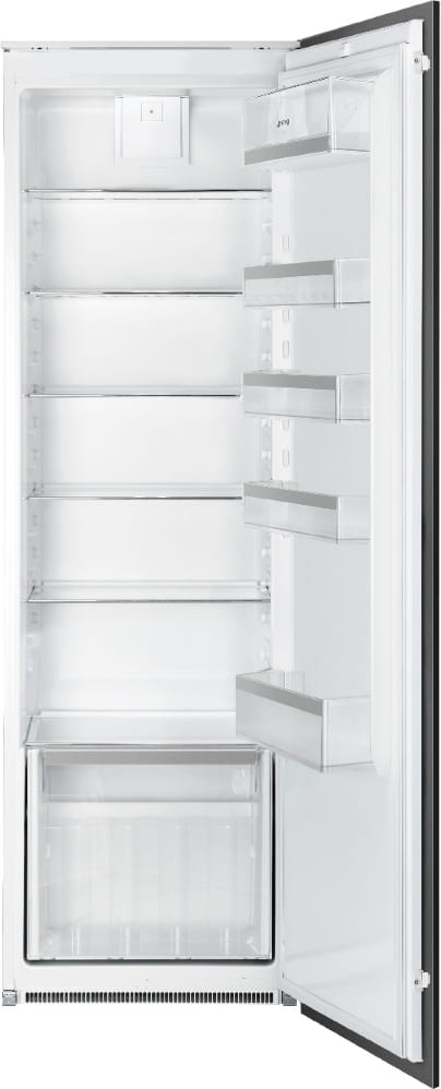 Встраиваемый холодильник SMEG S8L1721F предназначен для кратковременного хранения различных готовых блюд, охлаждённых продуктов и напитков, а также для заморозки и длительного хранения замороженных продуктов и полуфабрикатов. Полки на дверце пластиковые, с металлической окантовкой. Внутри холодильной камеры полки из закалённого стекла, благодаря чему выдерживают большую нагрузку. Данная модель идеально подходит для встраивания в объёмный гарнитур на просторной кухне.
