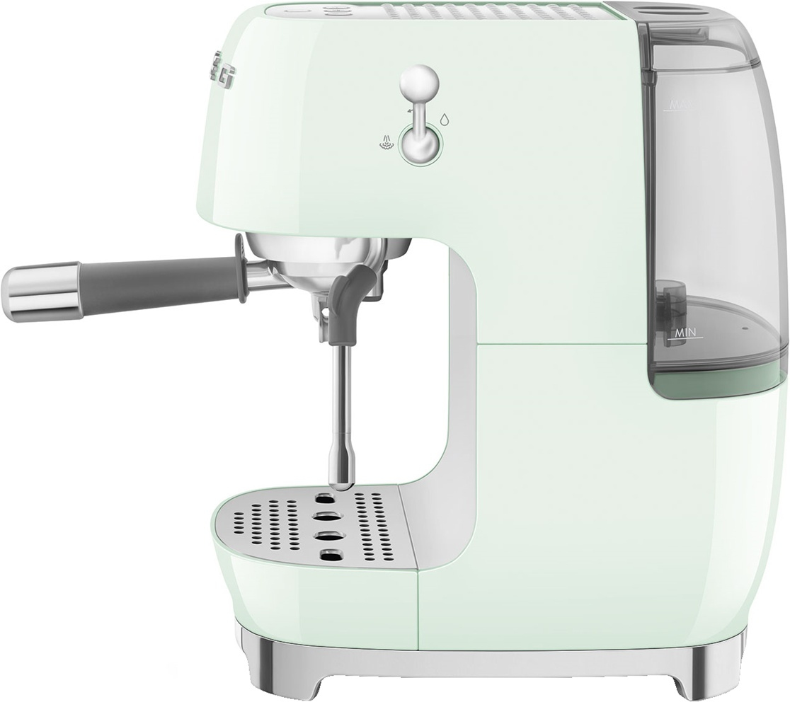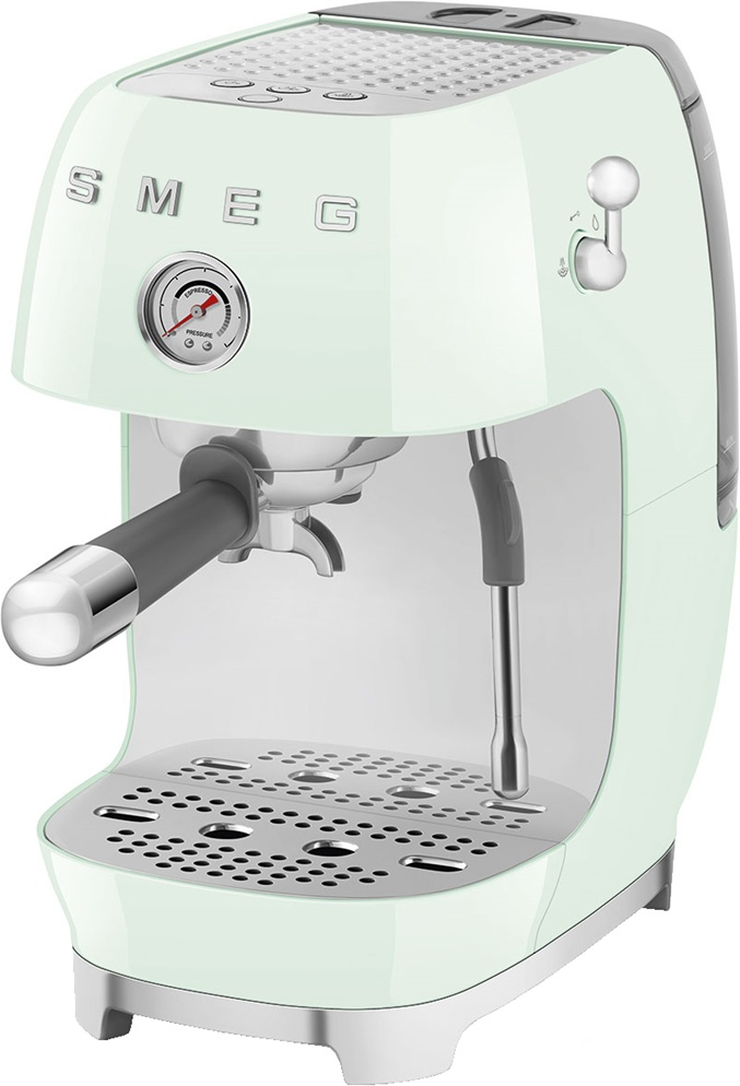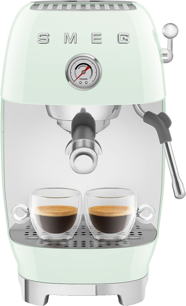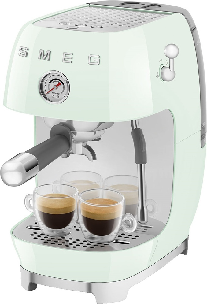 Эспрессо-кофемашина SMEG ECFO3PGEU, выполненная в стиле 50-х годов, подчеркнёт индивидуальность интерьера и станет настоящим украшением Вашей кухни в квартире или загородном доме. Предназначена для приготовления эспрессо, капучино и других кофейных напитков. Корпус и лоток для капель изготовлены из литого алюминия, холдер, рамка, капучинатор и поддон для чашек – из нержавеющей стали, основание – пластик.