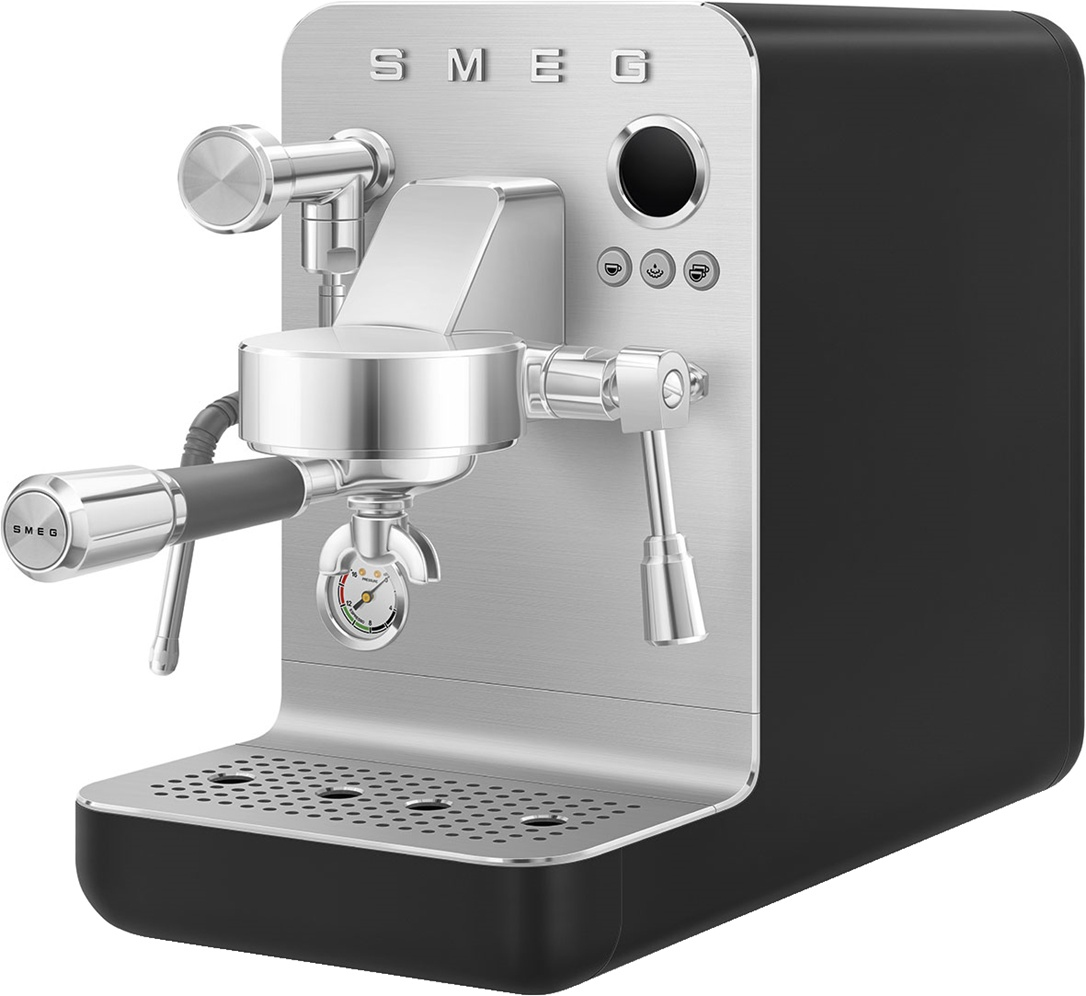 Рожковая эспрессо-кофемашина SMEG EMC02BLMEU подчеркнёт индивидуальность интерьера и станет настоящим украшением Вашей кухни в квартире или загородном доме. Предназначена для приготовления эспрессо и других кофейных напитков. Корпус изготовлен из нержавеющей стали и пластика, капучинатор – из стали, держатель для чашек – из алюминия, основание – пластик.