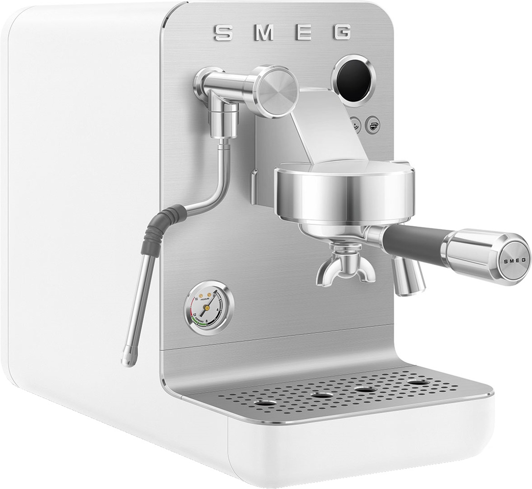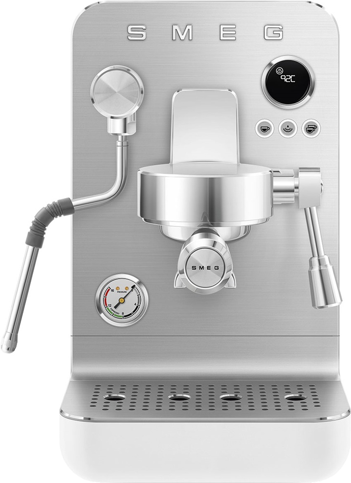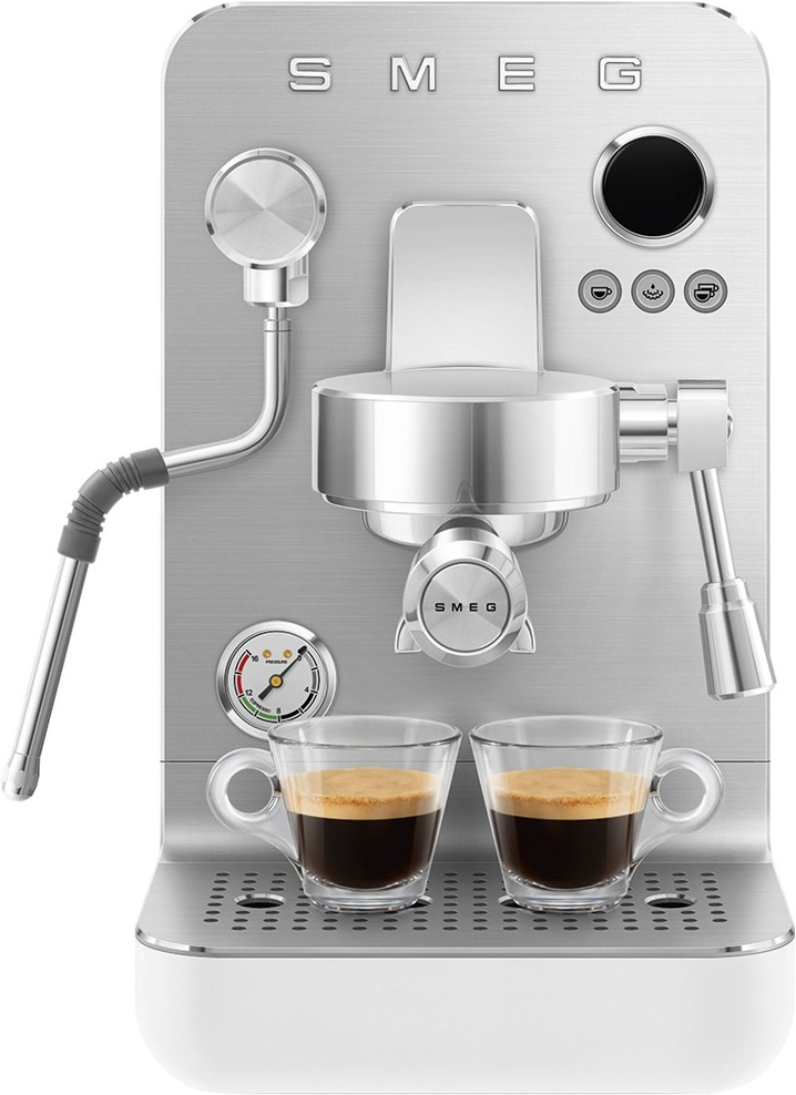 Рожковая эспрессо-кофемашина SMEG EMC02WHMEU подчеркнёт индивидуальность интерьера и станет настоящим украшением Вашей кухни в квартире или загородном доме. Предназначена для приготовления эспрессо и других кофейных напитков. Корпус изготовлен из нержавеющей стали и пластика, капучинатор – из стали, держатель для чашек – из алюминия, основание – пластик.