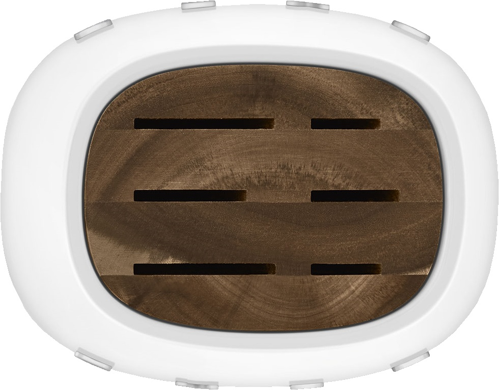 Комплект включает ножи, изготовленные из высококачественной нержавеющей стали немецкого сплава, что гарантирует долговечность и устойчивость к коррозии. Пазы для ножей выполнены из дерева акации, что добавляет набору утончённости и природного тепла. Прочный корпус и основание из глянцевого пластика с хромированной отделкой подчеркивают премиальный вид набора.