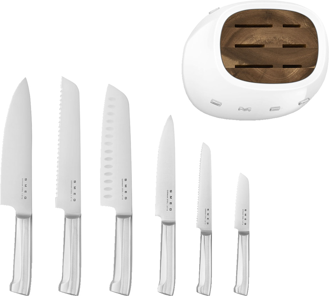 Комплект ножей SMEG KBSF02WH выполнен в стиле 50-х годов прошлого столетия. Этот набор сочетает в себе элегантный дизайн и высокую функциональность, что делает его незаменимым помощником для приготовления разнообразных блюд.