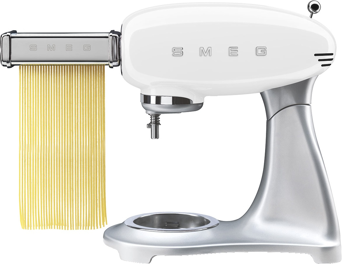 Планетарный миксер SMEG SMF04WHEU, выполненный в стиле 50-х годов, подчеркнёт индивидуальность интерьера и станет настоящим украшением Вашей кухни в квартире или загородном доме. Предназначен для приготовления кремов, муссов, соусов, пюре и жидкого теста. Применение специальных насадок позволяет существенно расширить ассортимент приготавливаемых блюд. С их помощью данную модель можно использовать в качестве тёрки или мясорубки, а также для приготовления различных блюд итальянской кухни.