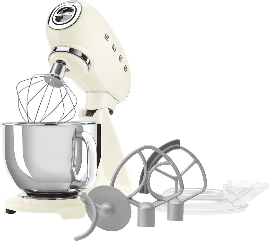 Планетарный миксер SMEG SMF05CREU, выполненный в стиле 50-х годов, подчеркнёт индивидуальность интерьера и станет настоящим украшением Вашей кухни в квартире или загородном доме. Предназначен для приготовления кремов, муссов, соусов, пюре и жидкого теста. Применение специальных насадок позволяет существенно расширить ассортимент приготавливаемых блюд. С их помощью данную модель можно использовать в качестве тёрки или мясорубки, а также для приготовления различных блюд итальянской кухни.