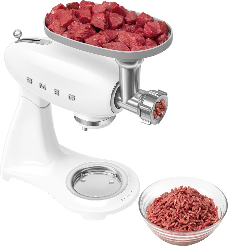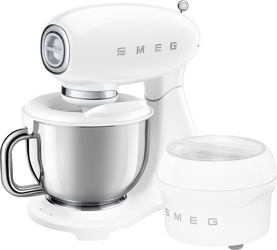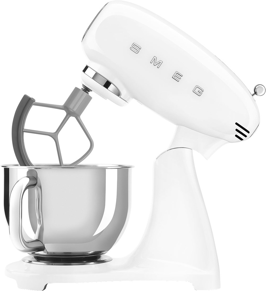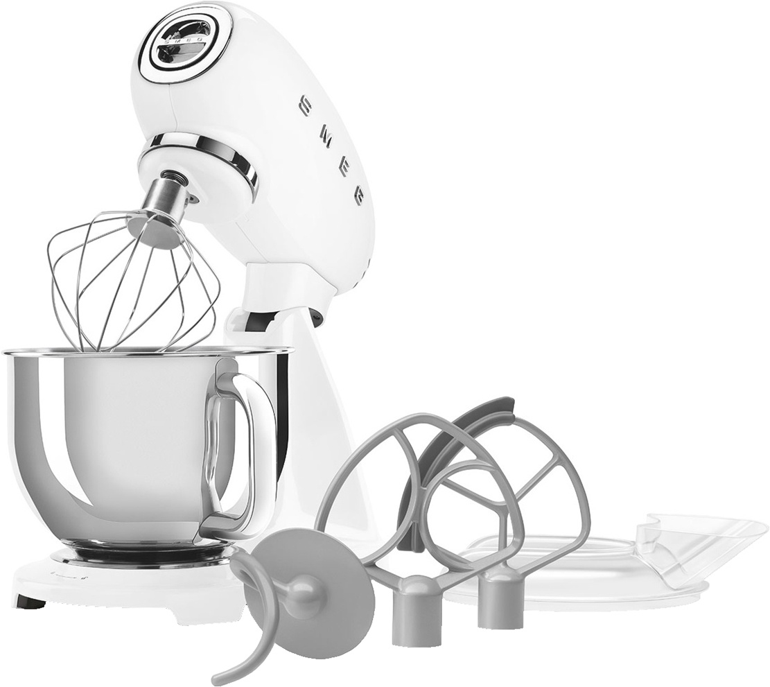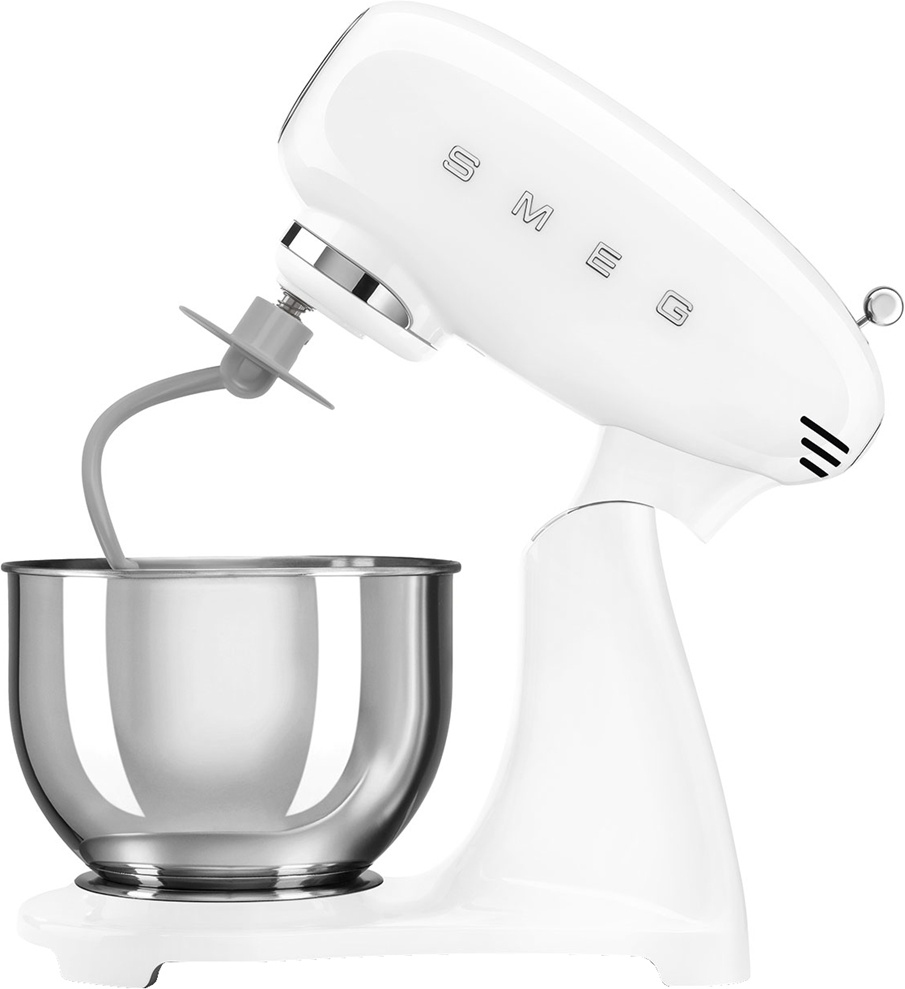 Планетарный миксер SMEG SMF05WHEU, выполненный в стиле 50-х годов, подчеркнёт индивидуальность интерьера и станет настоящим украшением Вашей кухни в квартире или загородном доме. Предназначен для приготовления кремов, муссов, соусов, пюре и жидкого теста. Применение специальных насадок позволяет существенно расширить ассортимент приготавливаемых блюд. С их помощью данную модель можно использовать в качестве тёрки или мясорубки, а также для приготовления различных блюд итальянской кухни.